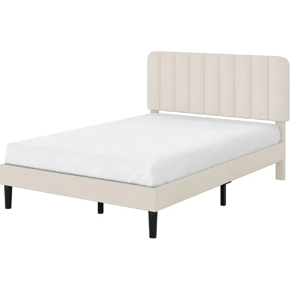 Queen Size Bed Frame with Upholstered Headboard, Bedframe Mattress Foundation, Strong Wood Slat Support, No Box Spring Needed
