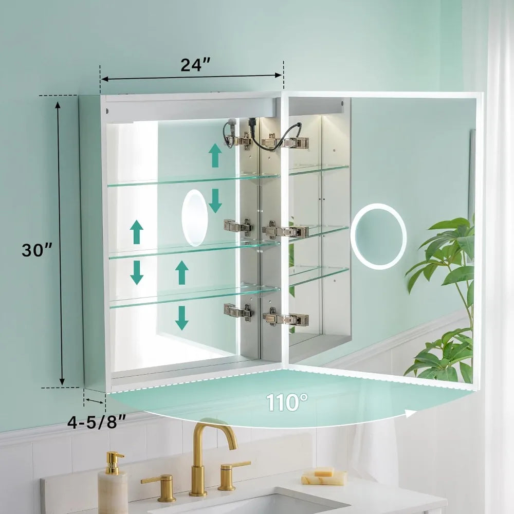 24" X 30" Medicine Cabinet With Lights, 3X Magnification, Anti-Fog Mirrored Cabinet, Bathroom Vanity With Outlets & USB Ports,