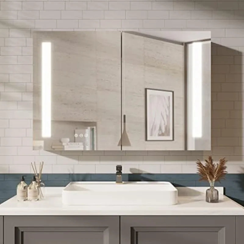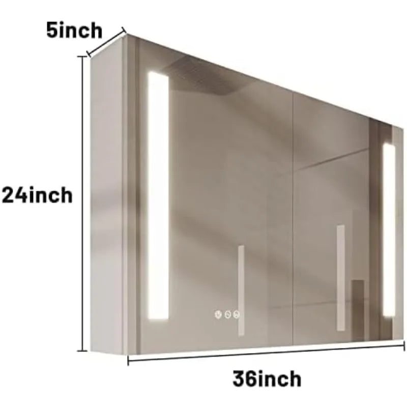 36×24 Inch Bathroom Medicine Cabinet, LED Lighted Medicine Cabinet with Mirror, Double Door Bathroom Vanity Mirror with Storage,