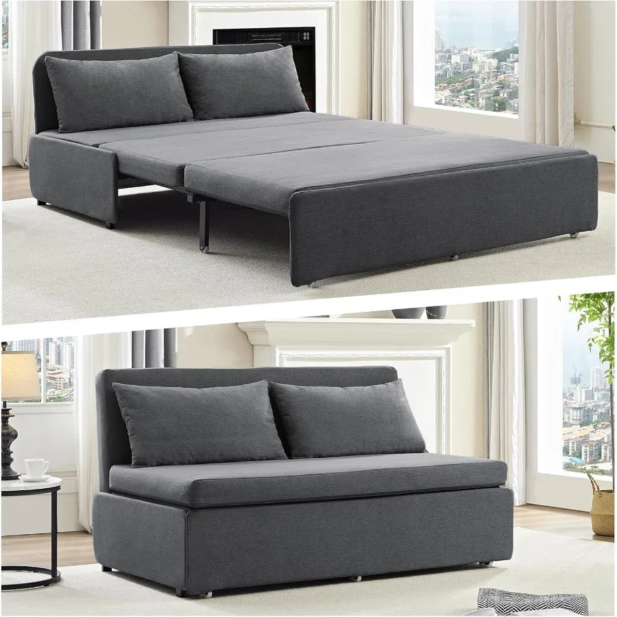 64.2 Queen Size Pull Out Sofa Bedloveseat S SofaLinen Convertible Couch Bed with Foldable Mattress2 in 1 Armless S Sofa with 2