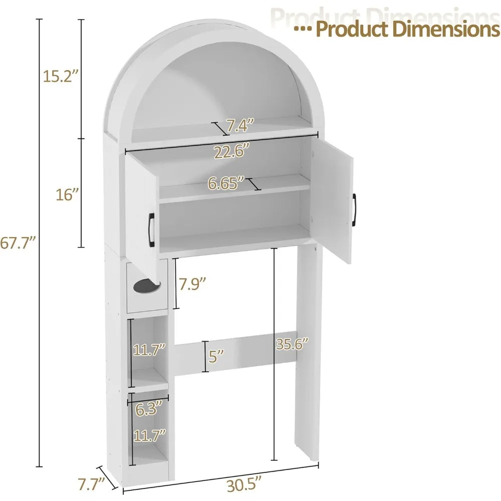 Bathroom Storage Cabinet Above Toilet, Arch-Shaped Organizer with Stability Feature and Adjustable Shelving