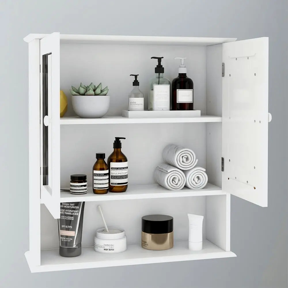 Double Door Mirror Cabinet Waterproof Bathroom Storage Shelf Rust Proof Open Compartment Organizer for Living Room Kitchen Study