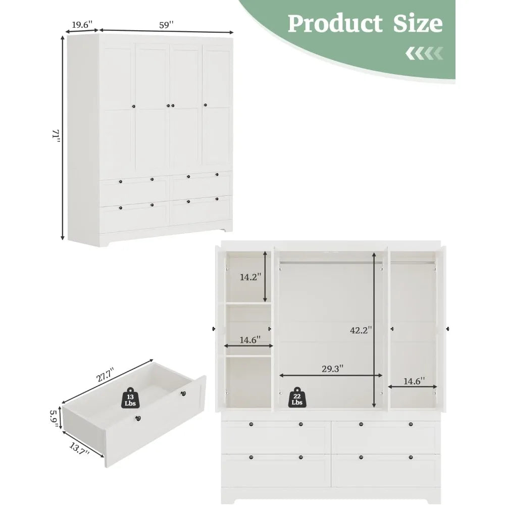 Large Wardrobe Closet with Drawers, Modular Closet System with Doors and Hanging Rods, Tall Large Armoire Ample Storage