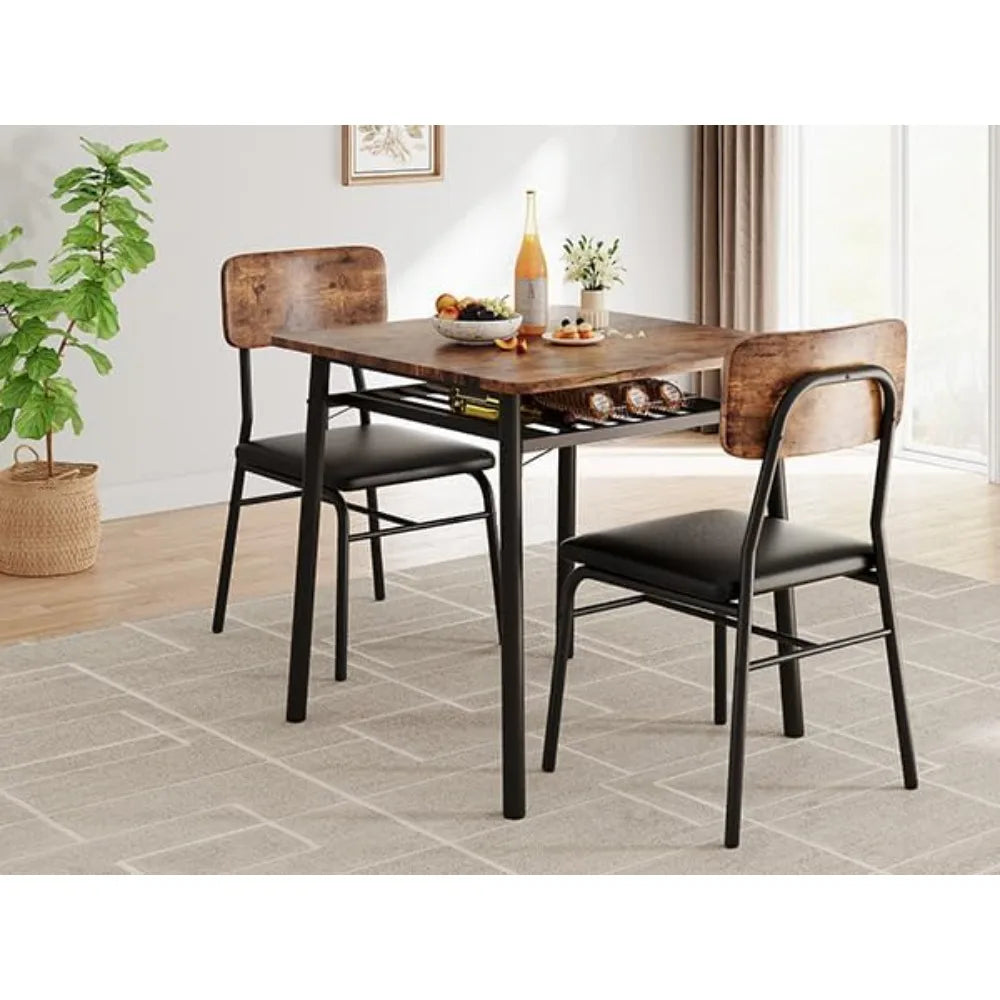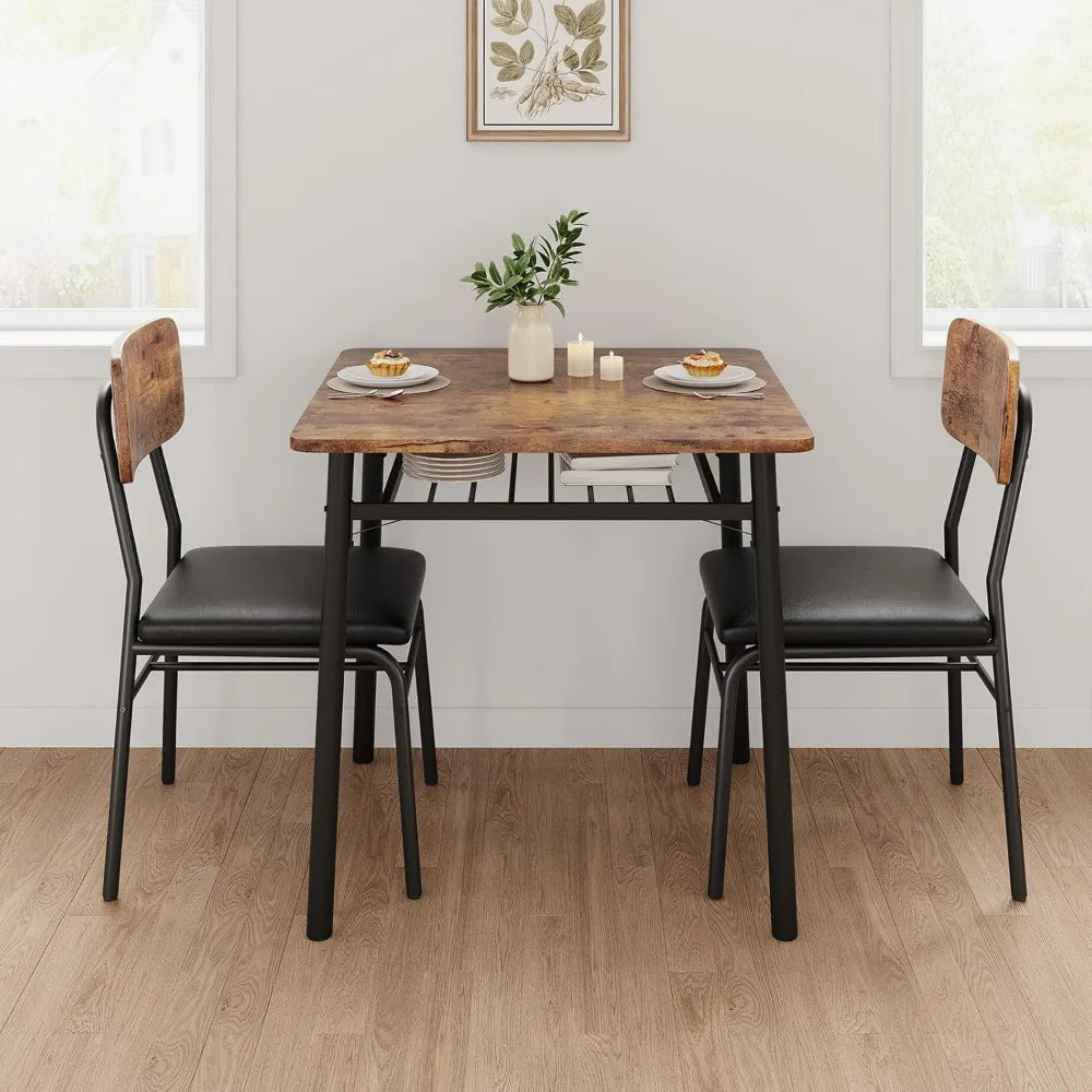 3-Piece Dining Table Set for 2 with 2 Chairs & Square Table, Space Saving Dinette ,Metal Frame, with Storage Rack