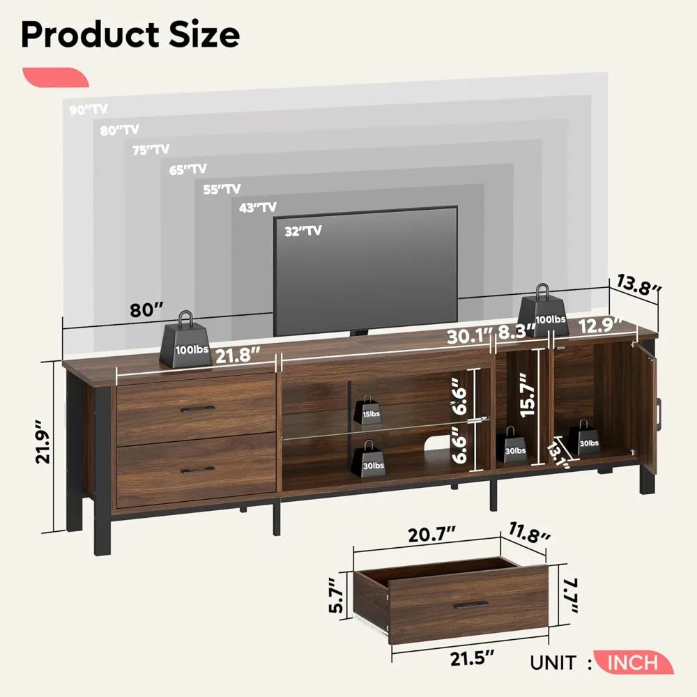 TV Stand for 75/80/85 inch TV,LED Gaming Entertainment Center,Modern TV Cabinet with Glass Shelves for Living Room,Media Console