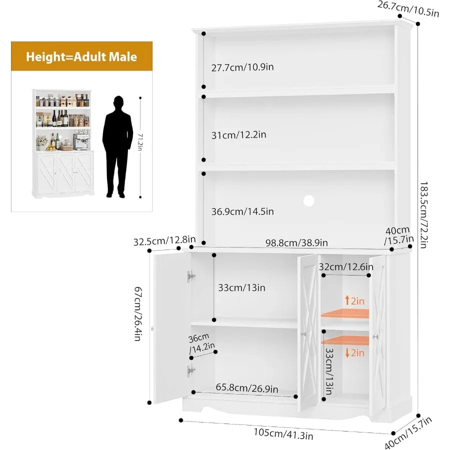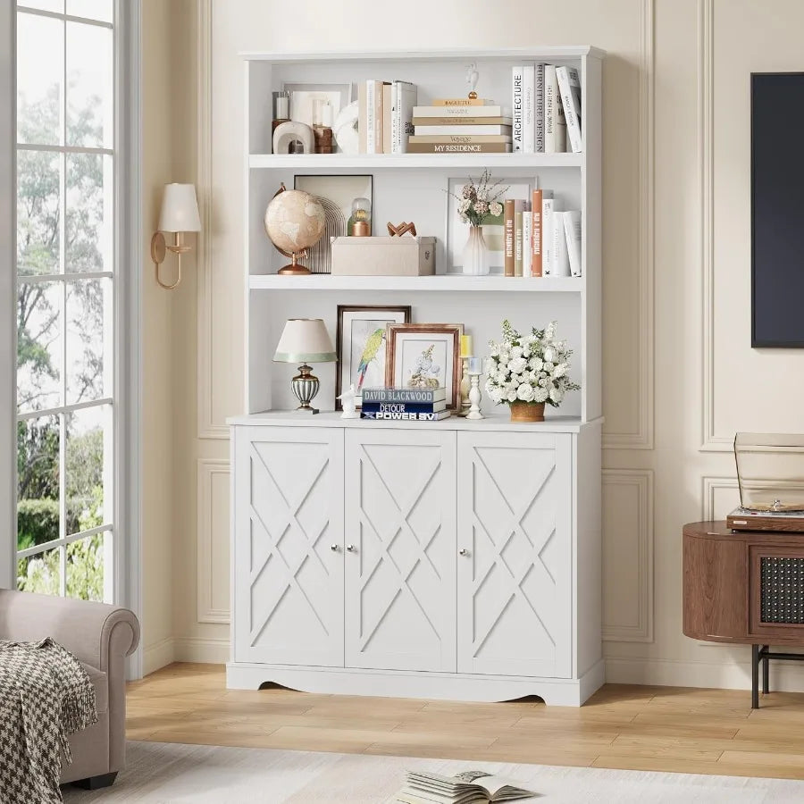 72 H Tall Bookshelf with Cabinets Wide Bookshelf and Bookcase with 3Tier Open Shelves Modern Book Case with Storage Cabinet for
