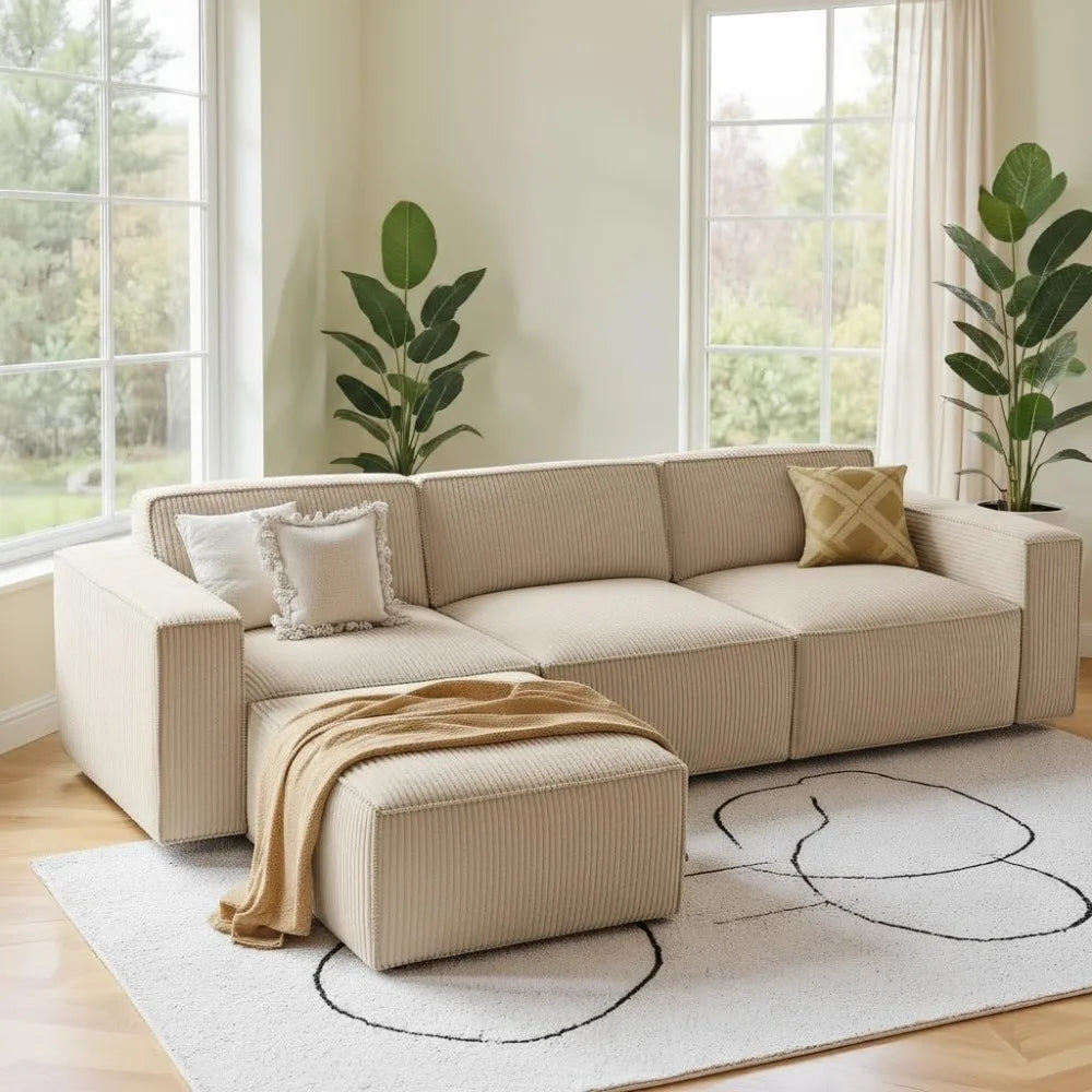 111" L Shaped Sofa Modular – Corduroy Cloud Couches with Deep Seats & High-Back, Upholstered Couches for Living Room