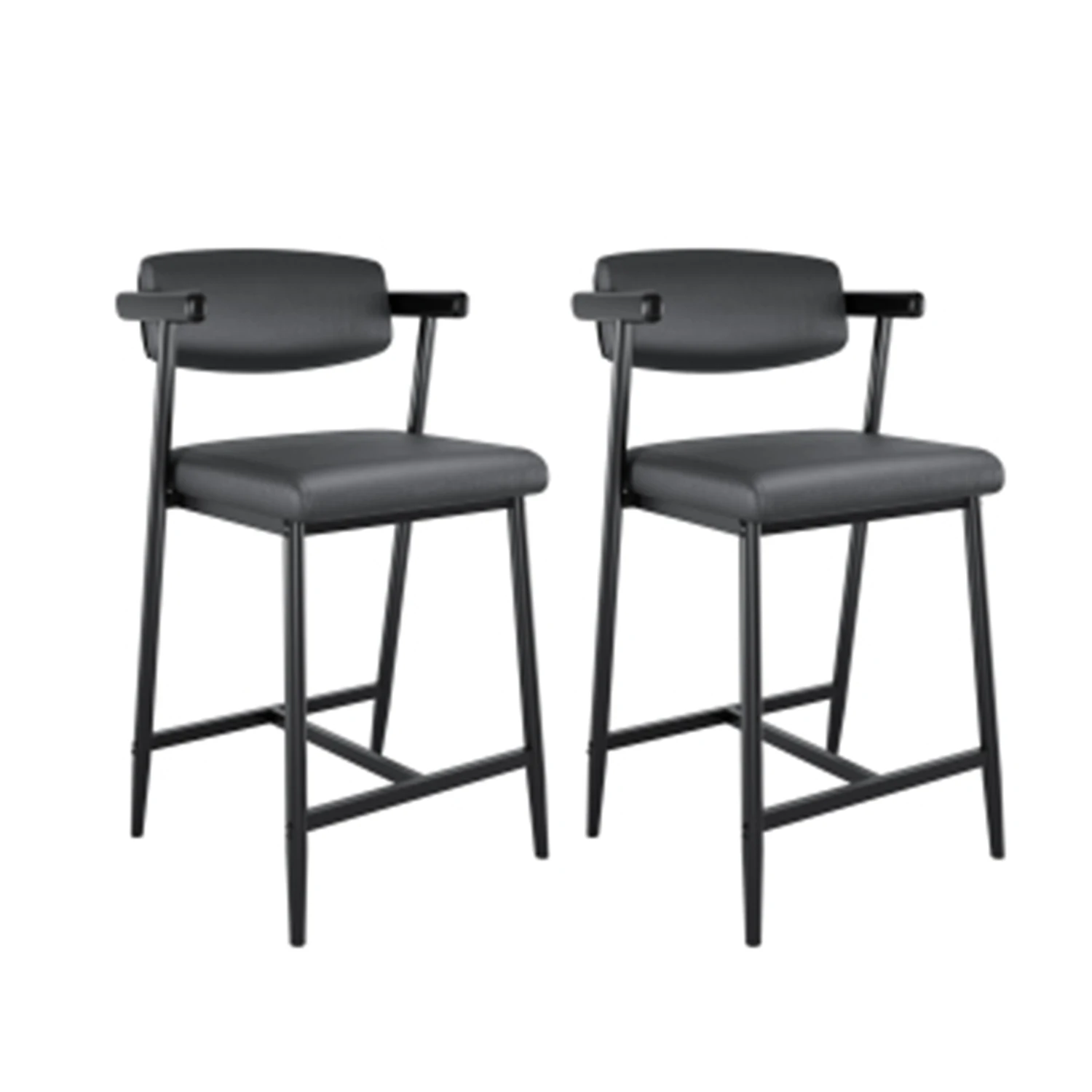 4. Versatile Style for Any Space: This set of two kitchen bar stools features supportive backs and arms, and comes in both a sleek gray and a rustic brown finish. With their classic, casual counter-height design, these stools are perfect for enhancing the ambiance of kitchen islands, bars, dining tables, counters, dining areas, and farmhouse-style spaces. They offer a practical and stylish upgrade to any setting
