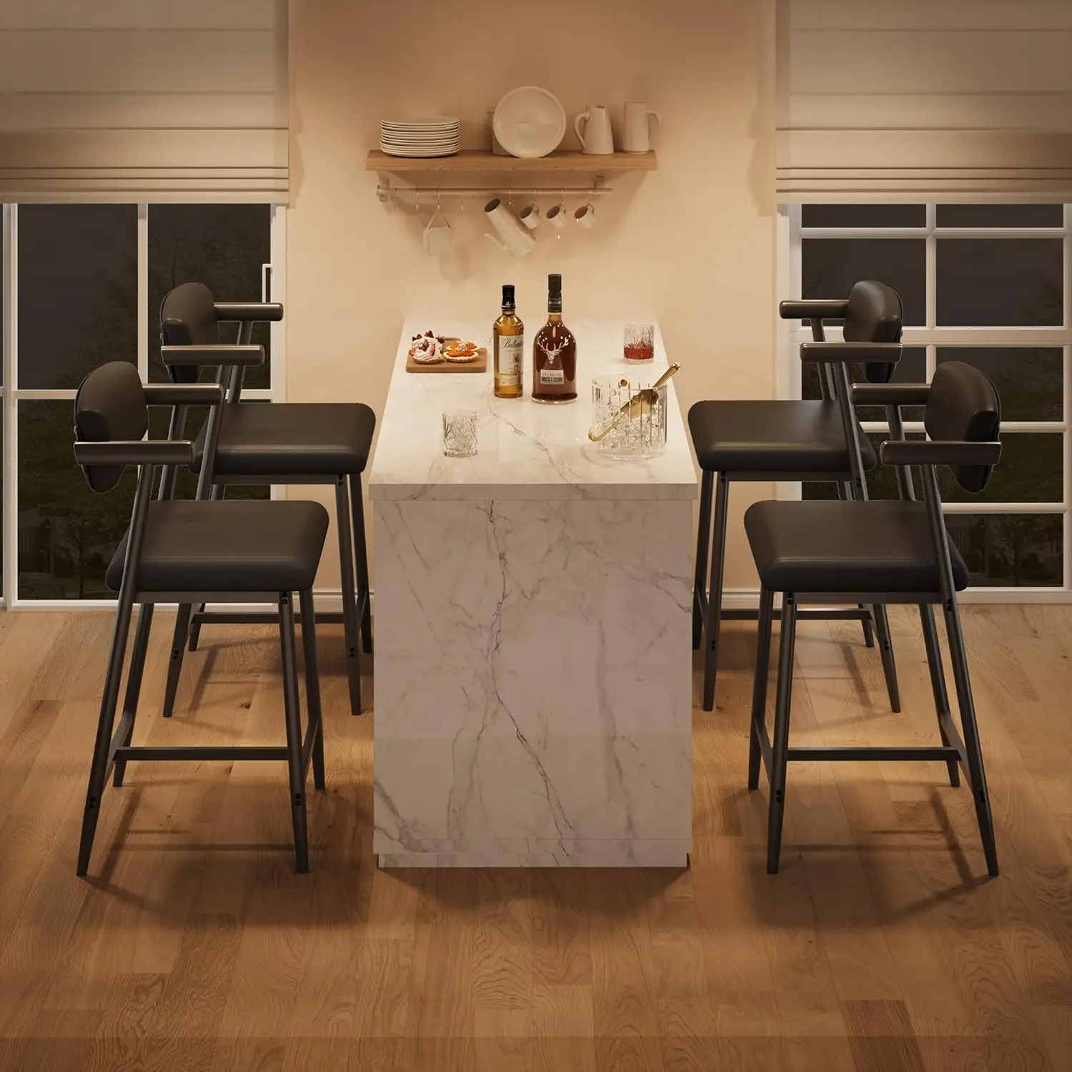 1. Comfortable Cushion, Arm & Back Support: Our barstools are equipped with thickened cushions on both the seat and backrest, ensuring exceptional comfort. The seat is thoughtfully designed to be wider than most standard bar stools, offering ample space, while the ergonomically shaped backrest delivers enhanced support. With added functional armrests and a built-in footrest, these stools provide superior lumbar support to help protect your back and allow your feet to rest in complete comfort