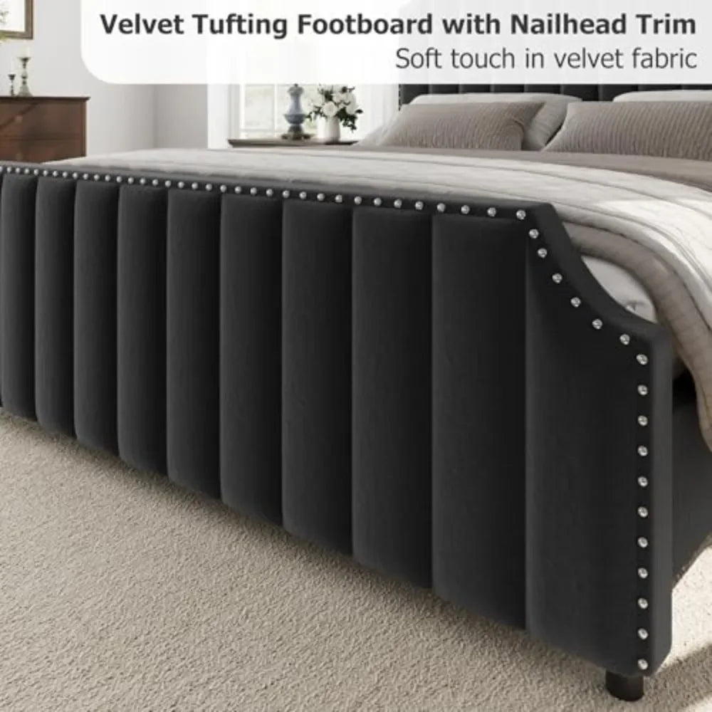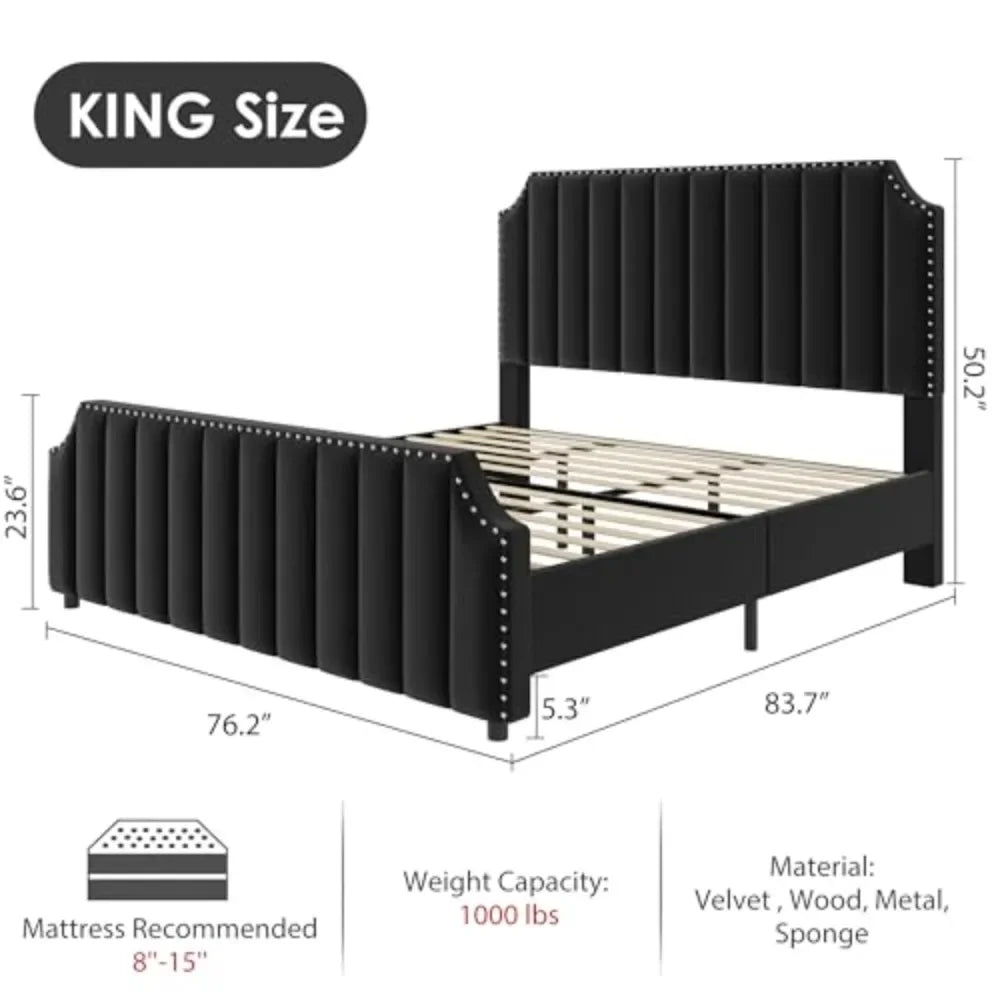 - Velvet Comfort & Quiet Nights - Wrapped in plush velvet fabric and featuring an EVA sponge for noise reduction, this king bed frame with headboard ensures a peaceful, luxurious sleep. Imagine sinking into velvety softness every night without a creak or squeak to disturb your dreams.