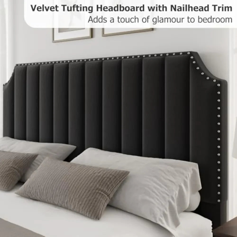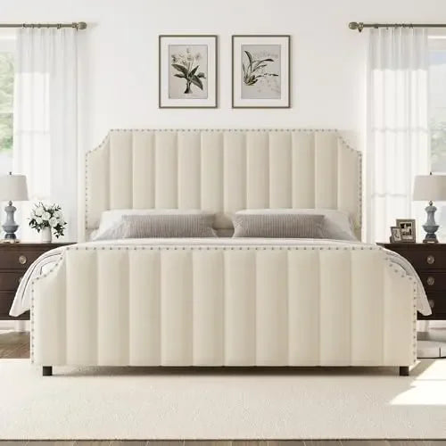 - Luxurious Headboard & Footboard - The 50.2" headboard and 23.6" footboard with vertical channel tufting and nailhead trim add a regal touch to your bedroom decor.