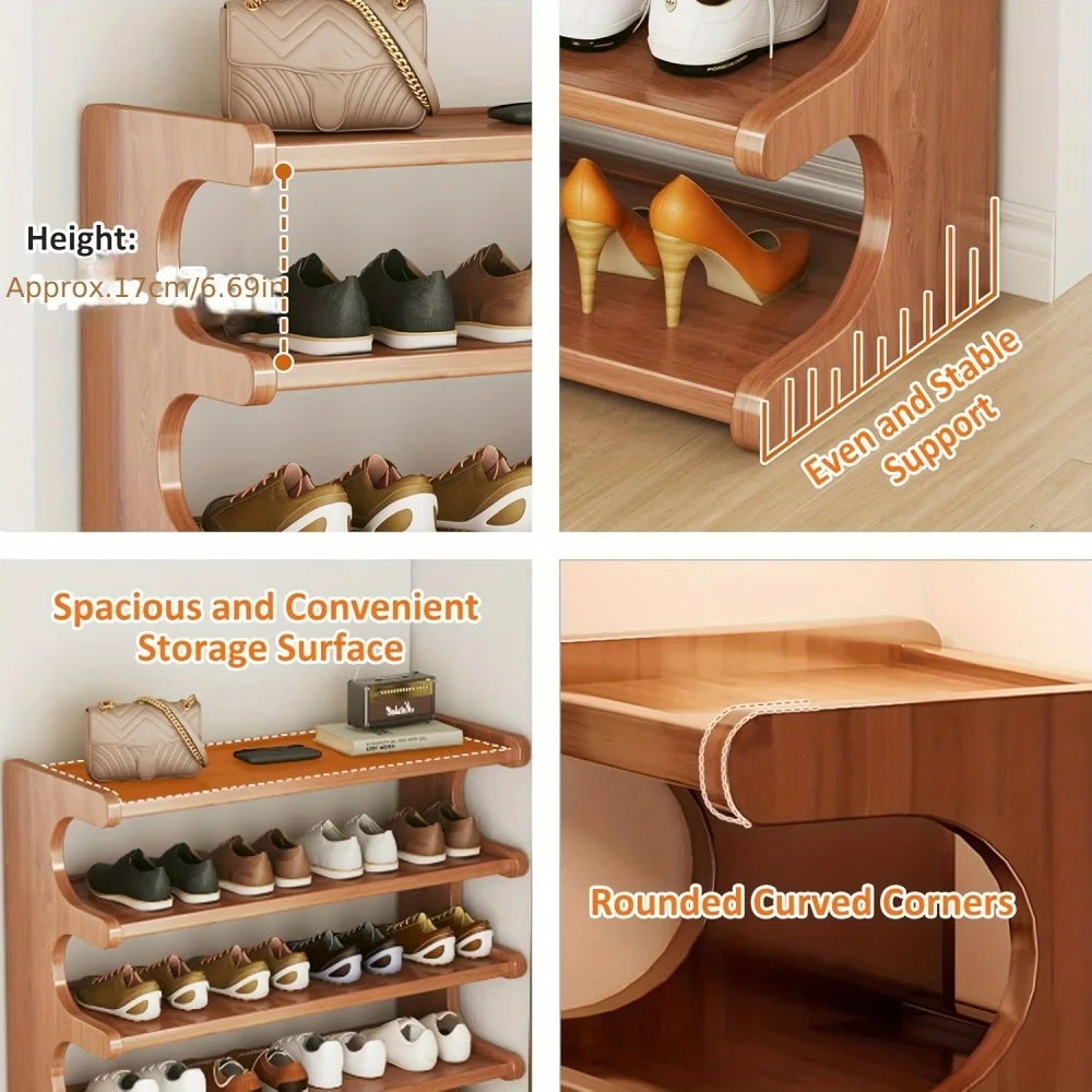 - Create a neat and orderly living space, starting with this 6-layer wooden shoe rack. The structure is stable, the appearance is simple and generous, both practical and beautiful, and each layer has spacious space and can easily accommodate multiple pairs of shoes.