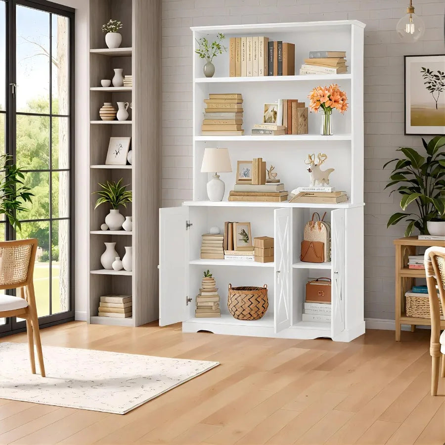 72 H Tall Bookshelf with Cabinets Wide Bookshelf and Bookcase with 3Tier Open Shelves Modern Book Case with Storage Cabinet for