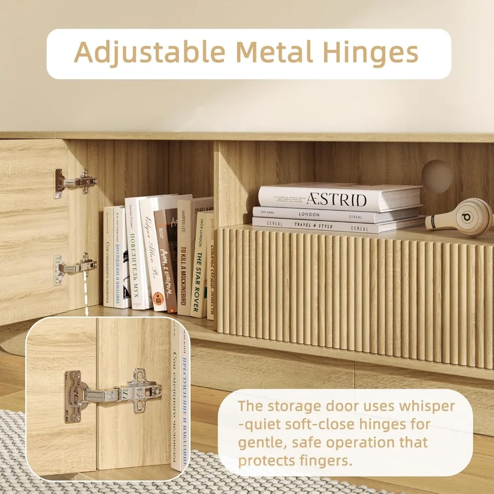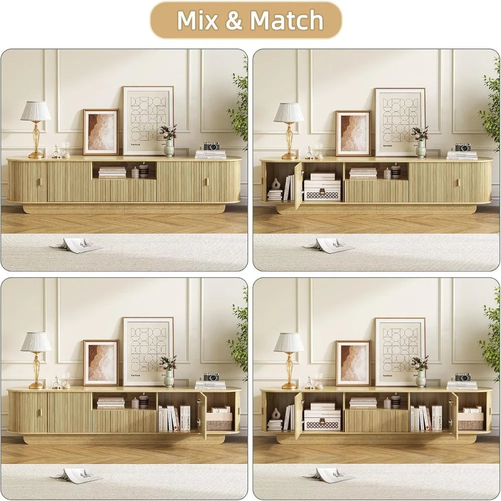 - 【Spacious & Fit for Large TVs】Designed for big screens, tambour TV stand: 86.61" L × 15.75" W × 18" H, comfortably accommodating TVs from 65" to 85". Its expansive surface provides ample space for your entertainment setup, ensure stability without overwhelming your space, while enhancing your living room’s aesthetic.