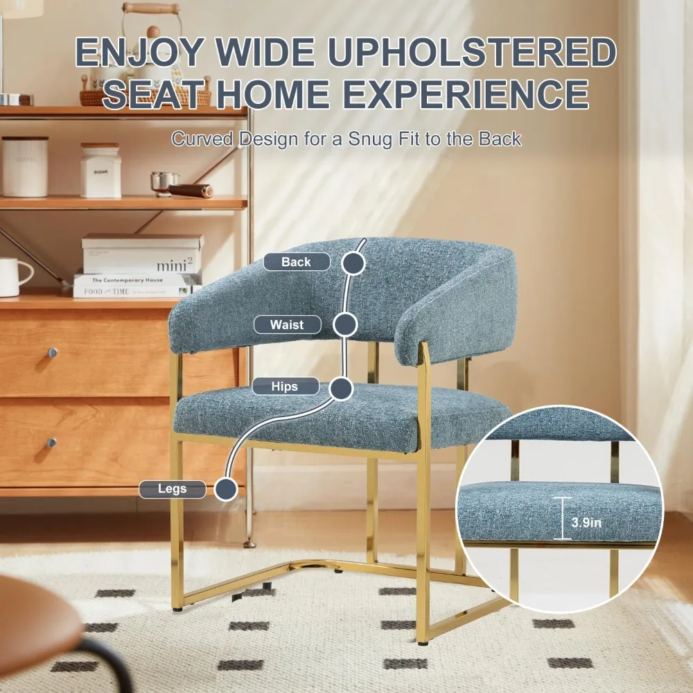 - 【Sturdy Structure】The dining room chair has a sturdy and stylish gilt metal frame for added security, we added two additional metal supports to make the chair more robust, with a maximum weight capacity of 330 lbs, ensuring years of use. And the non-slip foot pads of the chair can protect the floor from scratches and minimize noise.