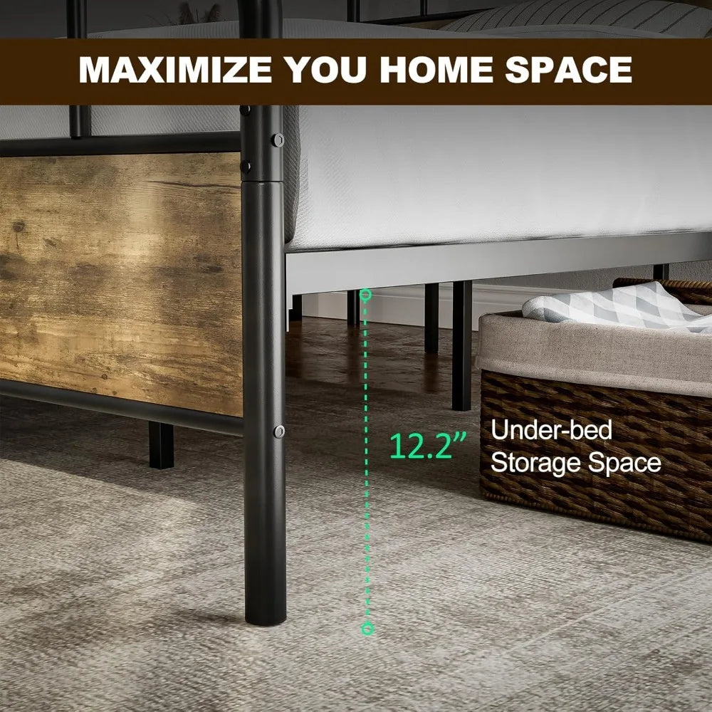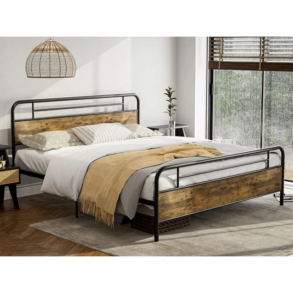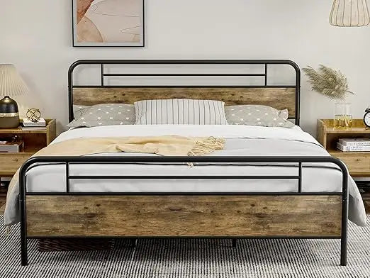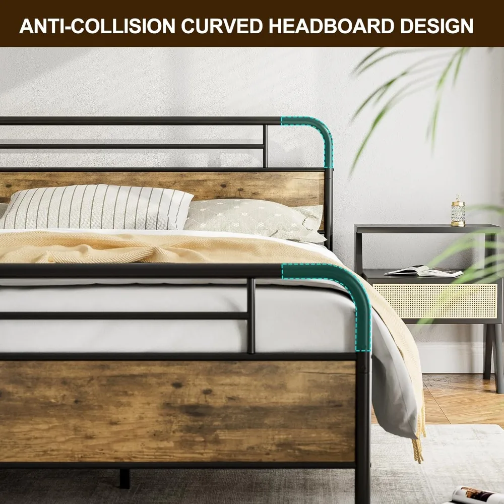 - Farmhouse Industrial Style : Made of high-grade MDF, curve shape headboard with sturdy metal structure. This mixed premium metal and wood bed frame will create the perfect modern farmhouse style statement while complementing your decor