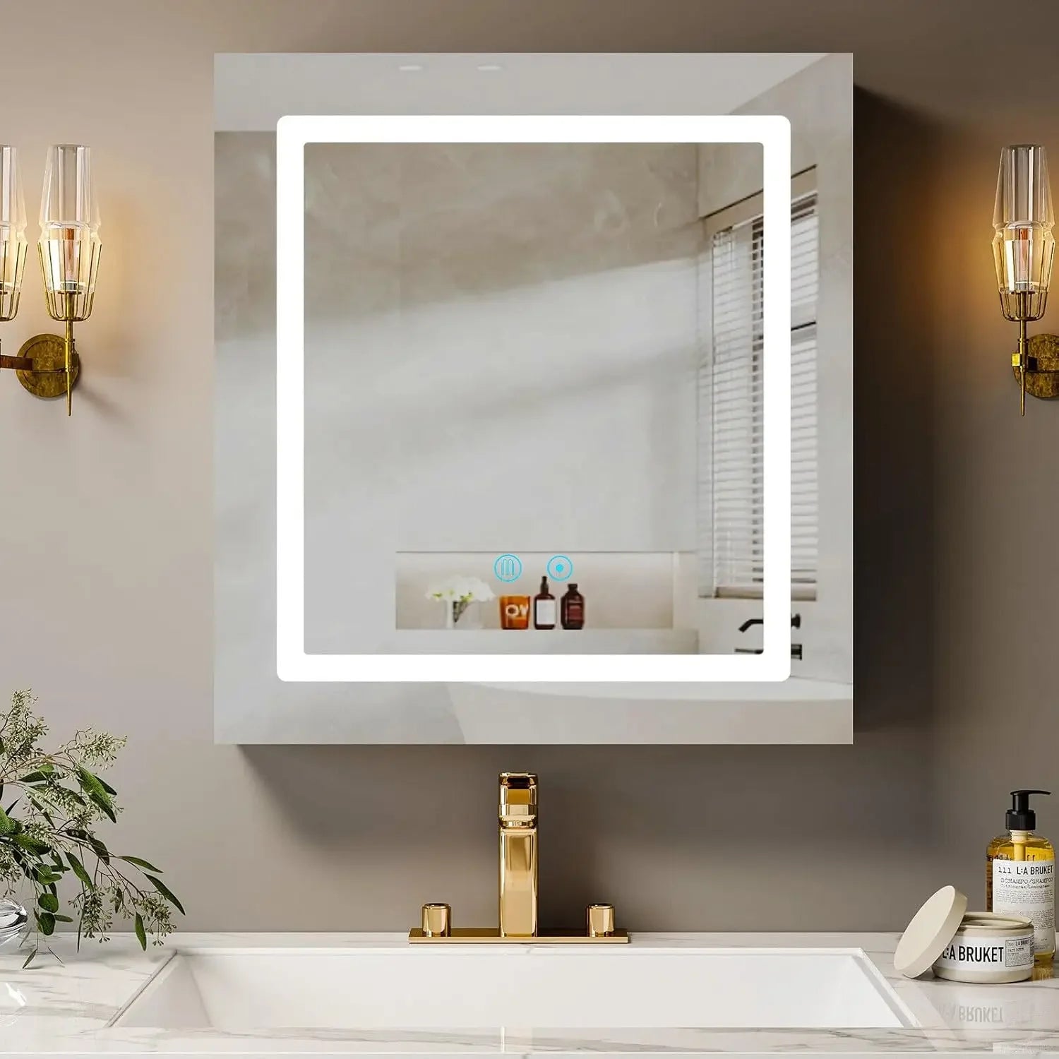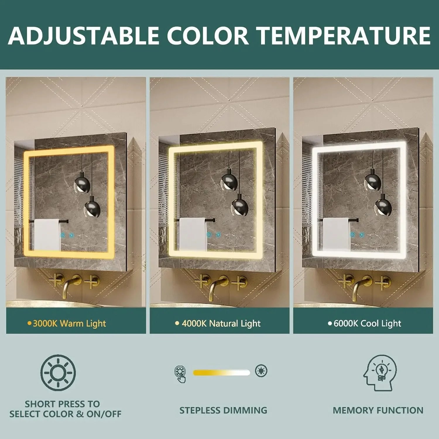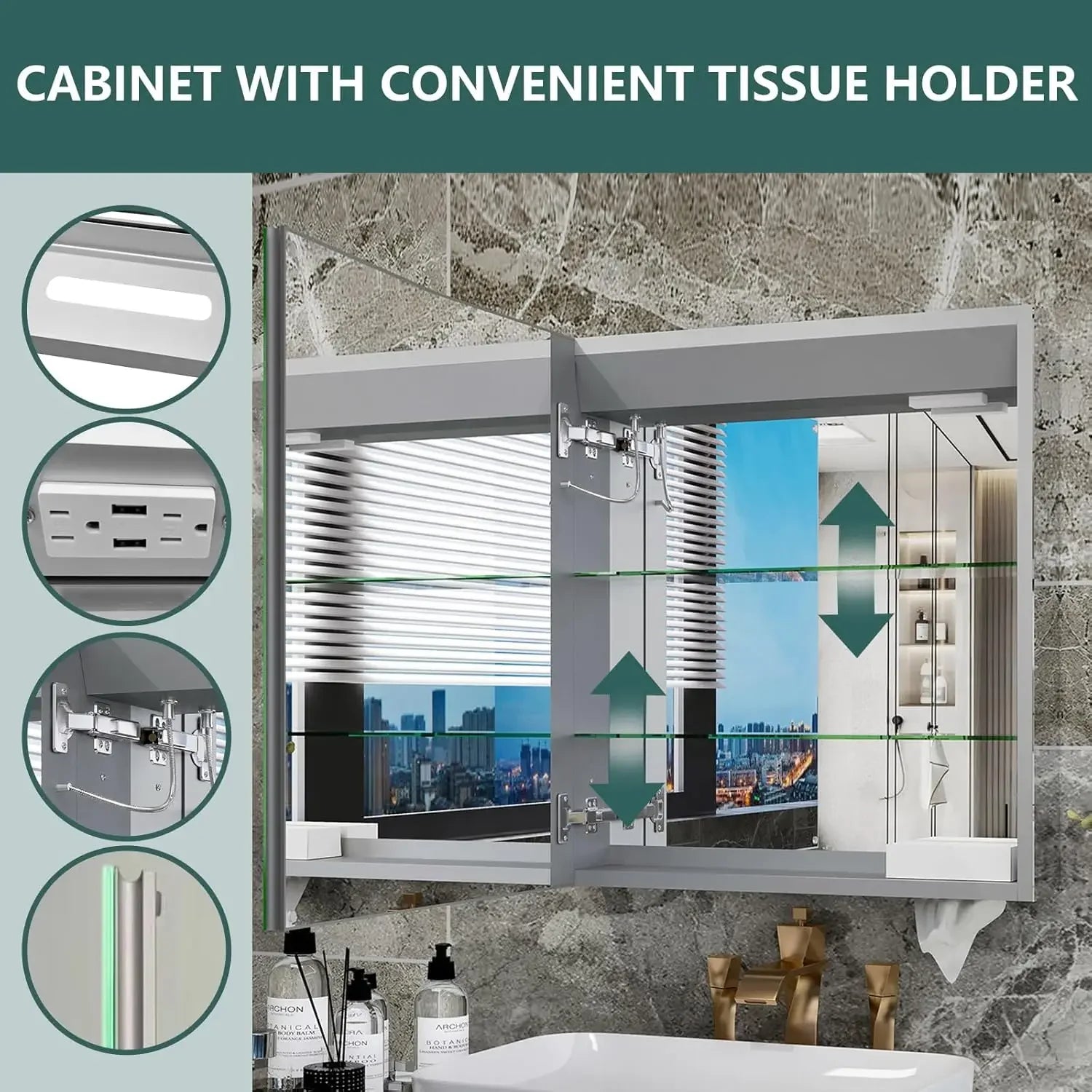 LED Lighted Bathroom Mirror Medicine Cabinet with Outlet, 24x26 Recessed, Wall Mounted, Defogger, Dimmable, 3 Color Light Makeup Mirror Cabinet, Tissue Holder
