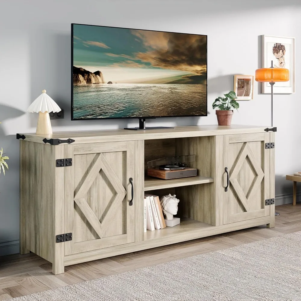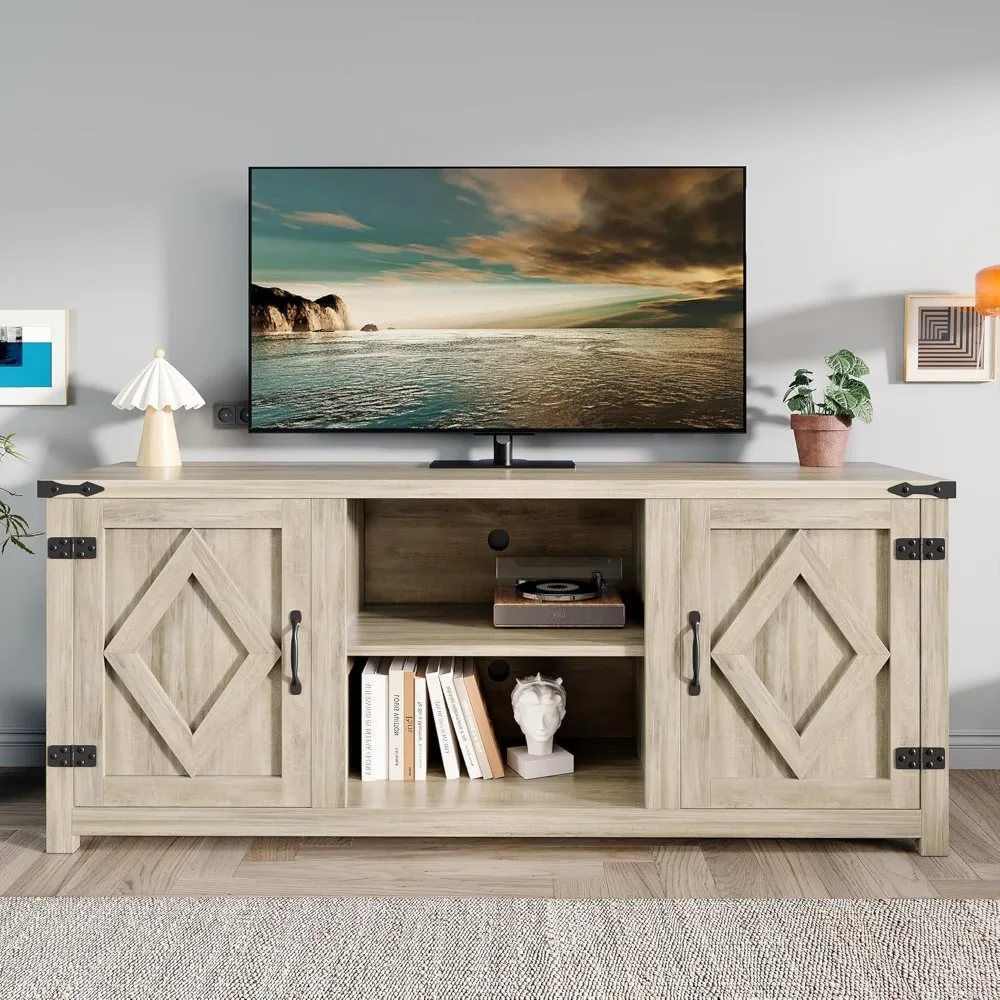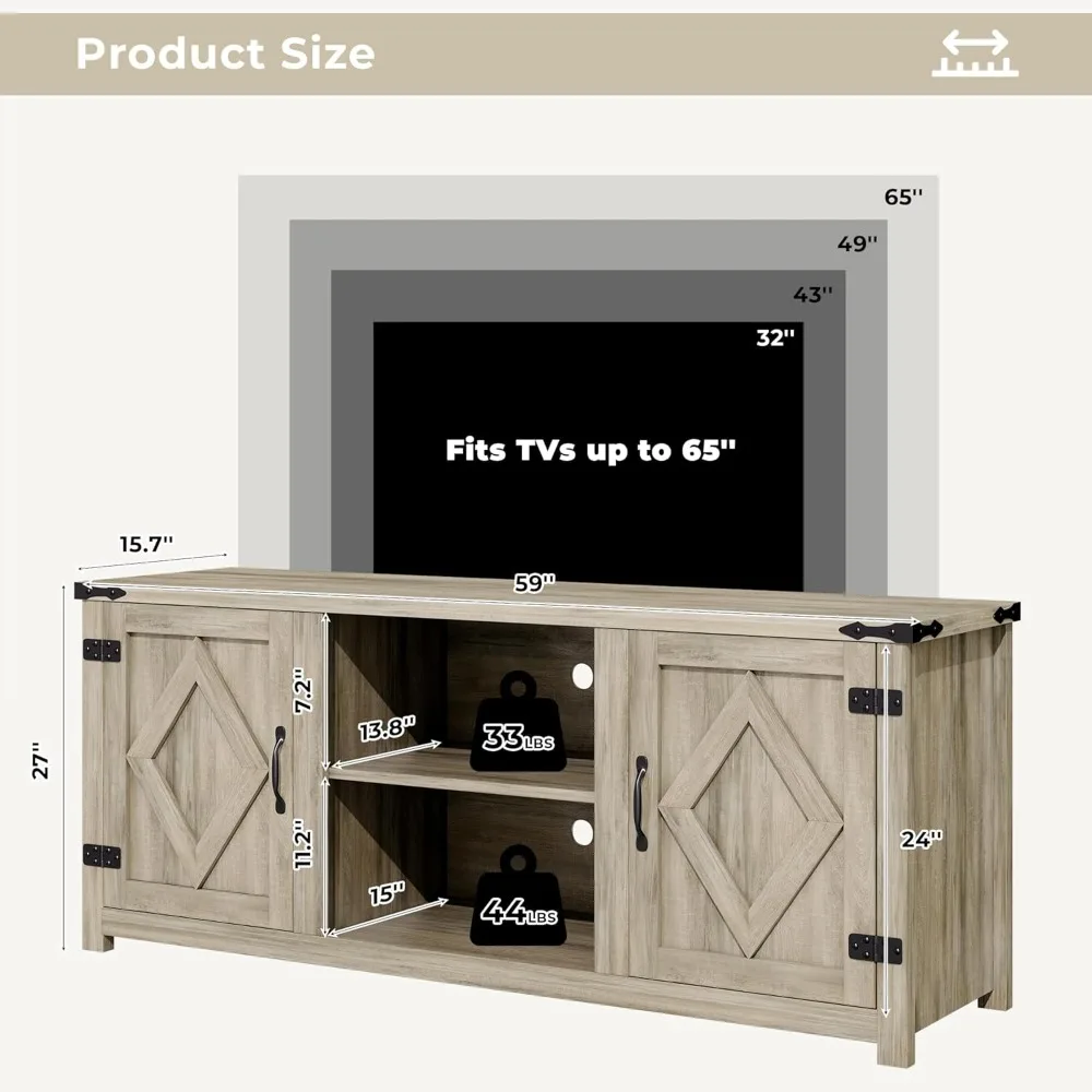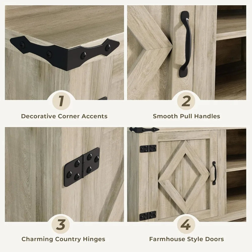 - Sliding Barn Door Design: This 59'' TV stand features two smooth-sliding barn doors that enhance the farmhouse look while giving you flexible storage options. Easily conceal or display items to keep your space organized and stylish